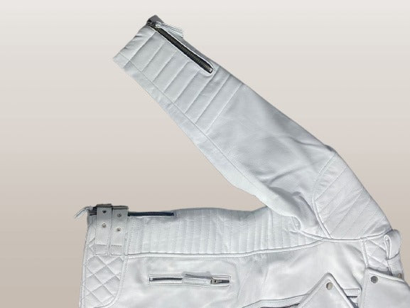 This jacket is made out of premium quality lambskin leather. It is light weight, extremely smooth and provided with quilt lining for extra warmth and comfort. It is equipped with hand polished in gold or gun metal and at front smoothly functional zipped pockets. It is provided with ribbed panelling and functional epaulettes on shoulders and enhanced stitched padding