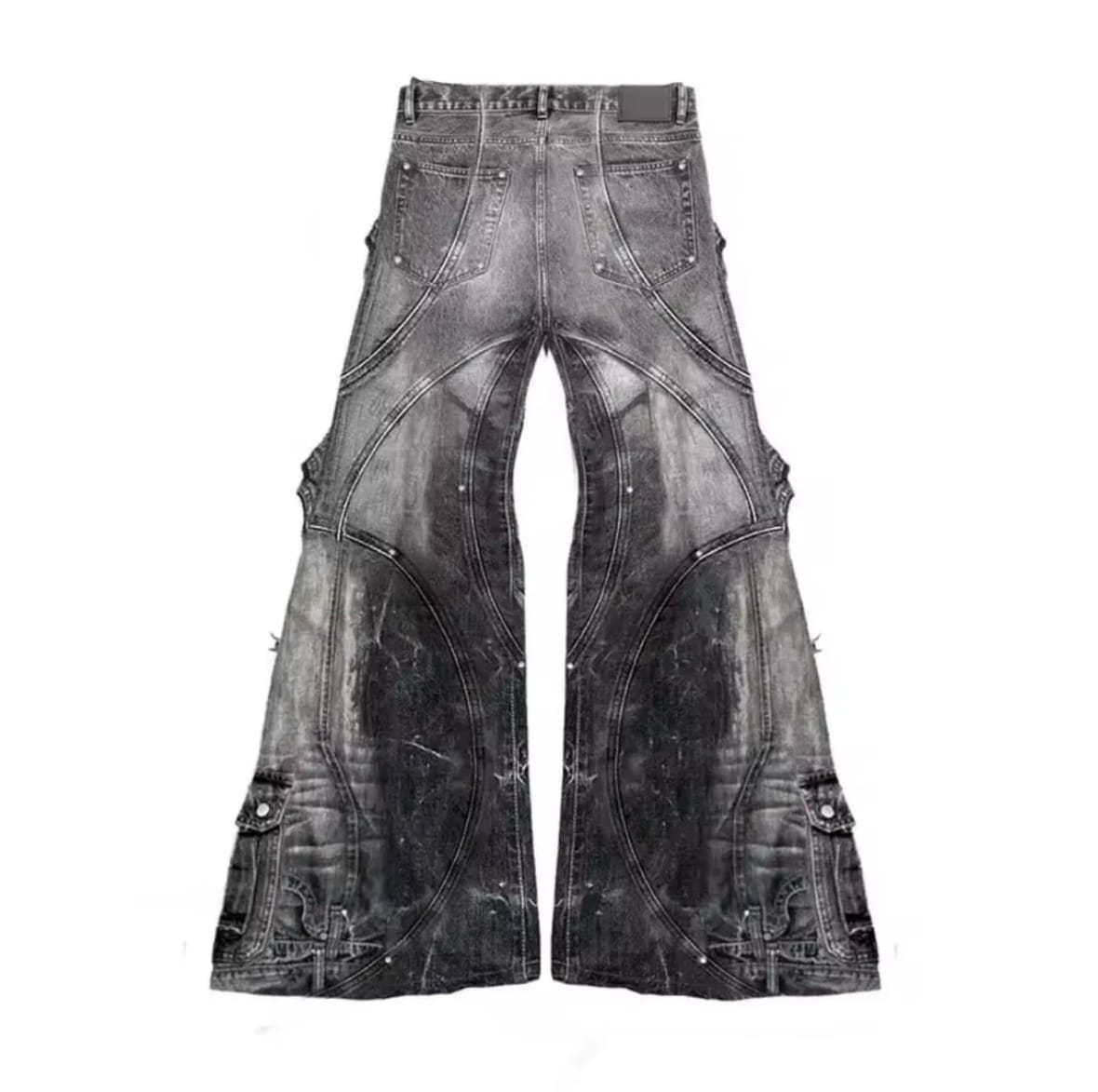 - Fabric: High-quality denim with a unique acid wash treatment, giving a distinctive faded and worn look.